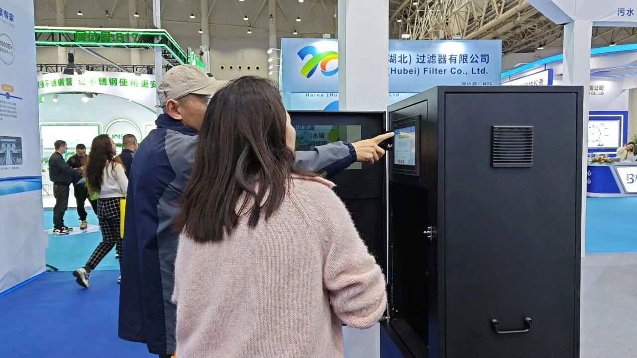 △第七届武汉水博会现场,向观众介绍黑金刚系列水质自动监测仪