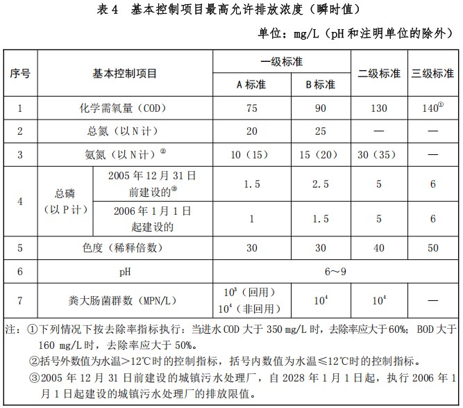 ③2005 年 12 月 31 日前建设的城镇污水处理厂,自 2028 年 1 月1 日起,执行2006 年 1 月 1 日起建设的城镇污水处理厂的排放限值。